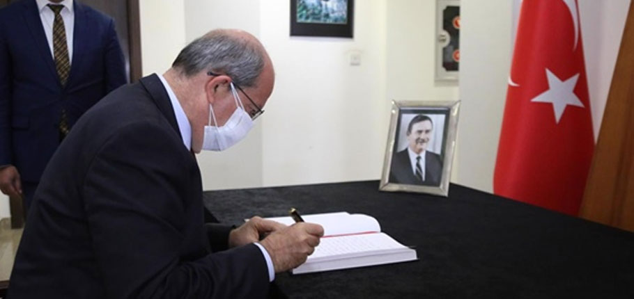 Cumhurbaşkanı Ersin Tatar, Türkiye Cumhuriyeti’nin eski başbakanlarından Yıldırım Akbulut’un vefatı nedeniyle Türkiye Cumhuriyeti’nin Lefkoşa Büyükelçiliği’nde açılan taziye defterini imzaladı.