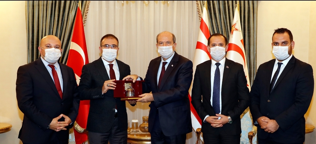 EkoAvrasya Denetleme Kurulu Başkanı Nazım Koşar, Kıbrıs Azerbaycan Cemiyeti Başkanı Orhan Hasanoğlu ve Öğretim Üyesi Ahmet Hamdi’nin de hazır bulunduğu kabulde, Cumhurbaşkanı Tatar’a Azerbaycan’dan getirilen vatan toprağı takdim edildi.