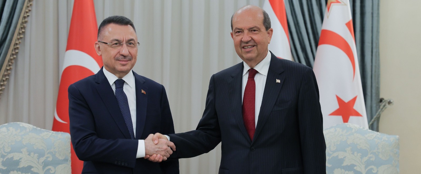 Cumhurbaşkanı Ersin Tatar ile Türkiye Cumhuriyeti Cumhurbaşkanı Yardımcısı Fuat Oktay arasındaki görüşme saat 14.30’da Cumhurbaşkanlığı’nda başladı.