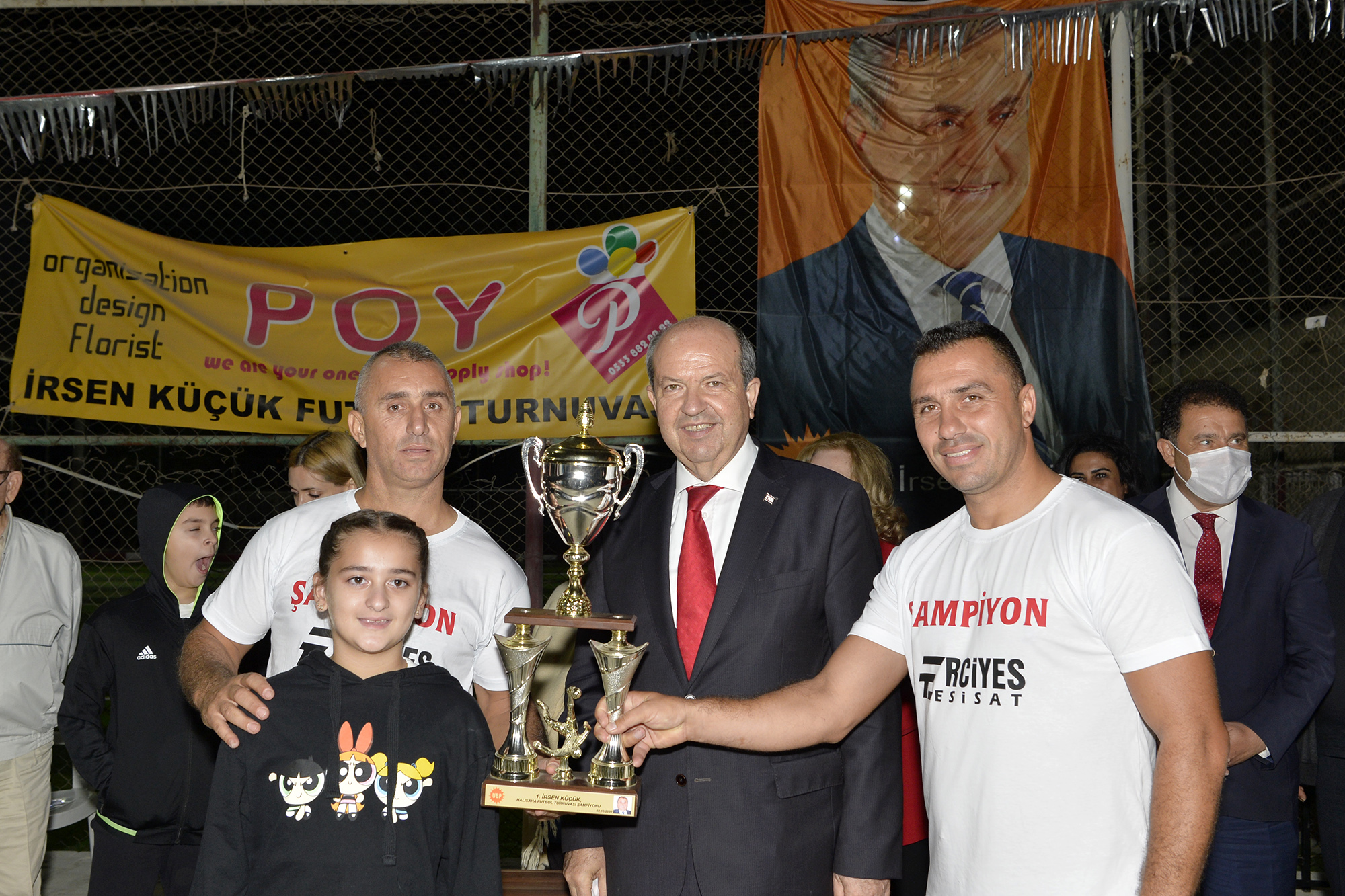 Cumhurbaşkanı İrsen Küçük, Ulusal Birlik Partisi (UBP) Gönyeli Örgütü Gençlik Kolları tarafından, merhum Başbakan İrsen Küçük anısına düzenlenen Halı Saha Futbol Turnuvası’nın final maçını izleyerek, kazanan takımların kupa ve madalyalarını verdi.