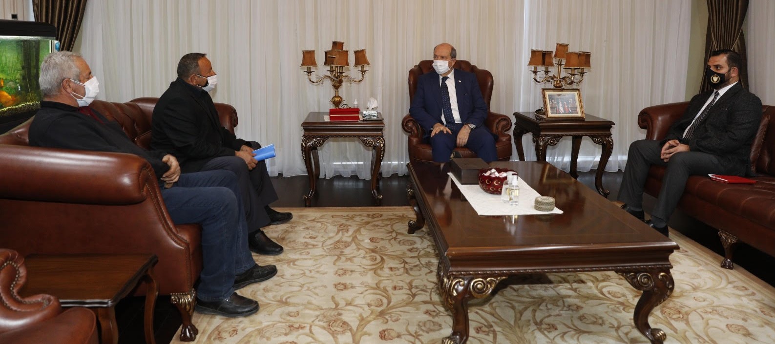 Cumhurbaşkanı Ersin Tatar, Kıbrıs Türk Patates Üreticiler Birliği Başkanı Engin Halkseven ve Yönetim Kurulu Üyesi Salih Efendi’yi kabul ederek görüştü.