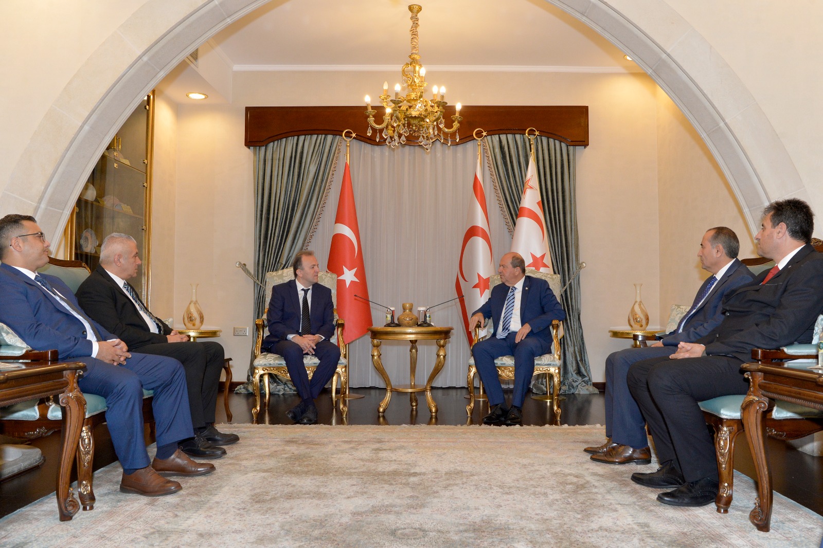 Cumhurbaşkanı Ersin Tatar, Türkiye Cumhuriyeti Aile ve Sosyal Hizmetler Bakan Yardımcısı Rıdvan Duran ve beraberindekileri kabul etti.