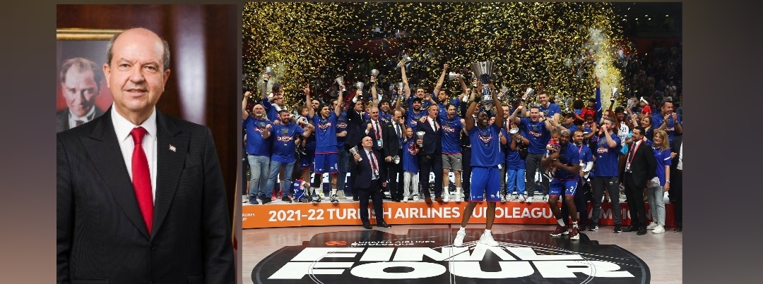 Cumhurbaşkanı Ersin Tatar , Basketbol THY Avrupa Ligi Dörtlü Finali’nde İspanya ekibi Real Madrid’i 58-57 mağlup ederek art arda 2. kez şampiyon olan Anadolu Efes’i tebrik etti.
