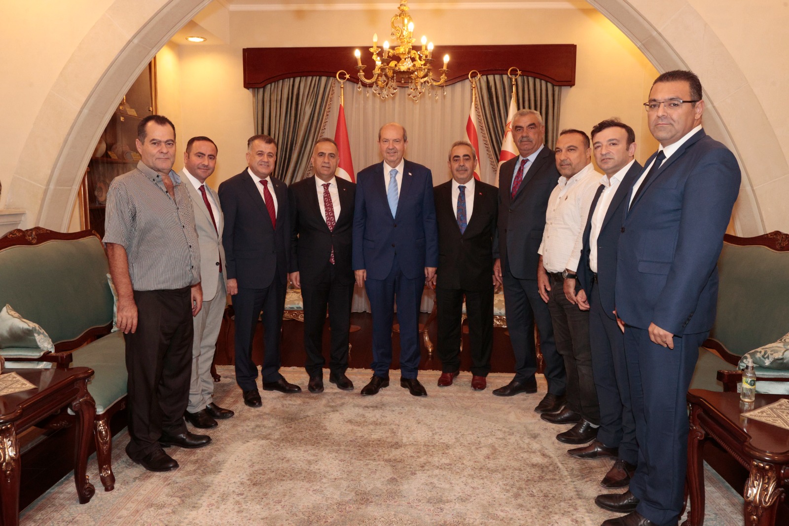 Cumhurbaşkanı Ersin Tatar, Altınözü Belediye Başkanı Rıfat Sarı, Reyhanlı Belediye Başkanı Mehmet Hacıoğlu ve Hatay İl Başkanı Yusuf Bulanık’ı kabul etti.