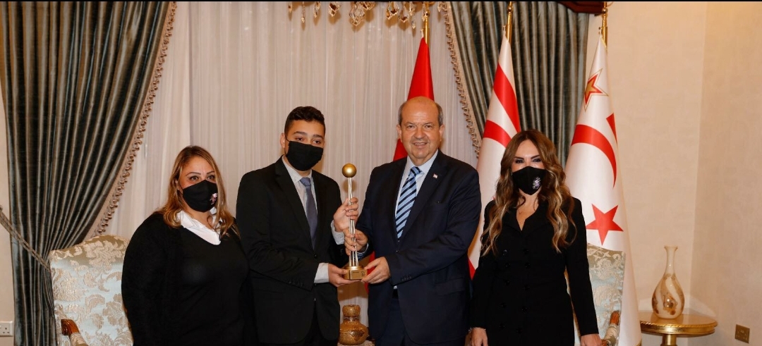 Cumhurbaşkanı Ersin Tatar, Nevşehir Belediyesi ev sahipliğinde, Türkiye Engelsiz Sanat Birliği ve Yön Sanat Atölyesi’nin organize ettiği 6. Engelsiz Sanat Ödülleri’nde Yılın Resim Sanatçısı ödülüne layık görülen engelli resim sanatçısı Mert Yalın’ı kabul ederek ödülünü takdim etti.