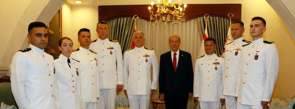 Cumhurbaşkanı Tatar kabulde yaptığı konuşmada, Deniz Harp Okulu’ndan gelen heyeti KKTC’de görmekten dolayı duyduğu memnuniyeti ifade ederek, 48 yıl önce Kıbrıs Türk halkının özgürlüğüne kavuştuğunu, tüm sıkıntılara ve yapılan haksızlıklara rağmen KKTC’nin güçlenmesi için uğraş vermeye devam ettiklerini söyledi.