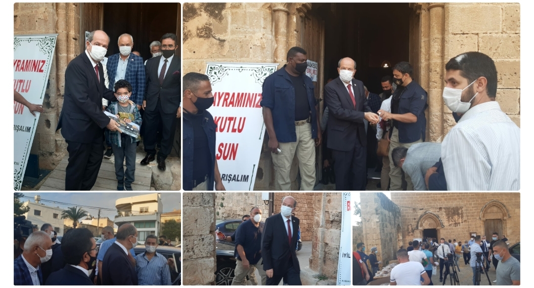 Cumhurbaşkanı Ersin Tatar, TC Lefkoşa Büyükelçisi Ali Murat Başçeri, Kıbrıs Türk Vakıflar İdaresi Genel Müdürü İbrahim Benter de Bayram namazını Gazimağusa da eski adı Buğday Camii olarak bilinen ve yeniden ibadete açılan Sinan Paşa Camii’de kıldı.