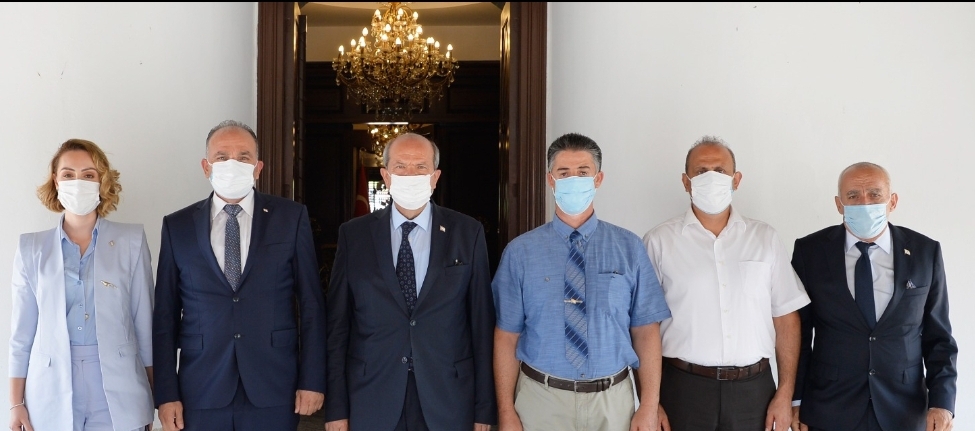Cumhurbaşkanı Ersin Tatar, Gürsel Benan başkanlığındaki Şehit Aileleri ve Malul Gaziler Derneği yönetimini kabul etti.