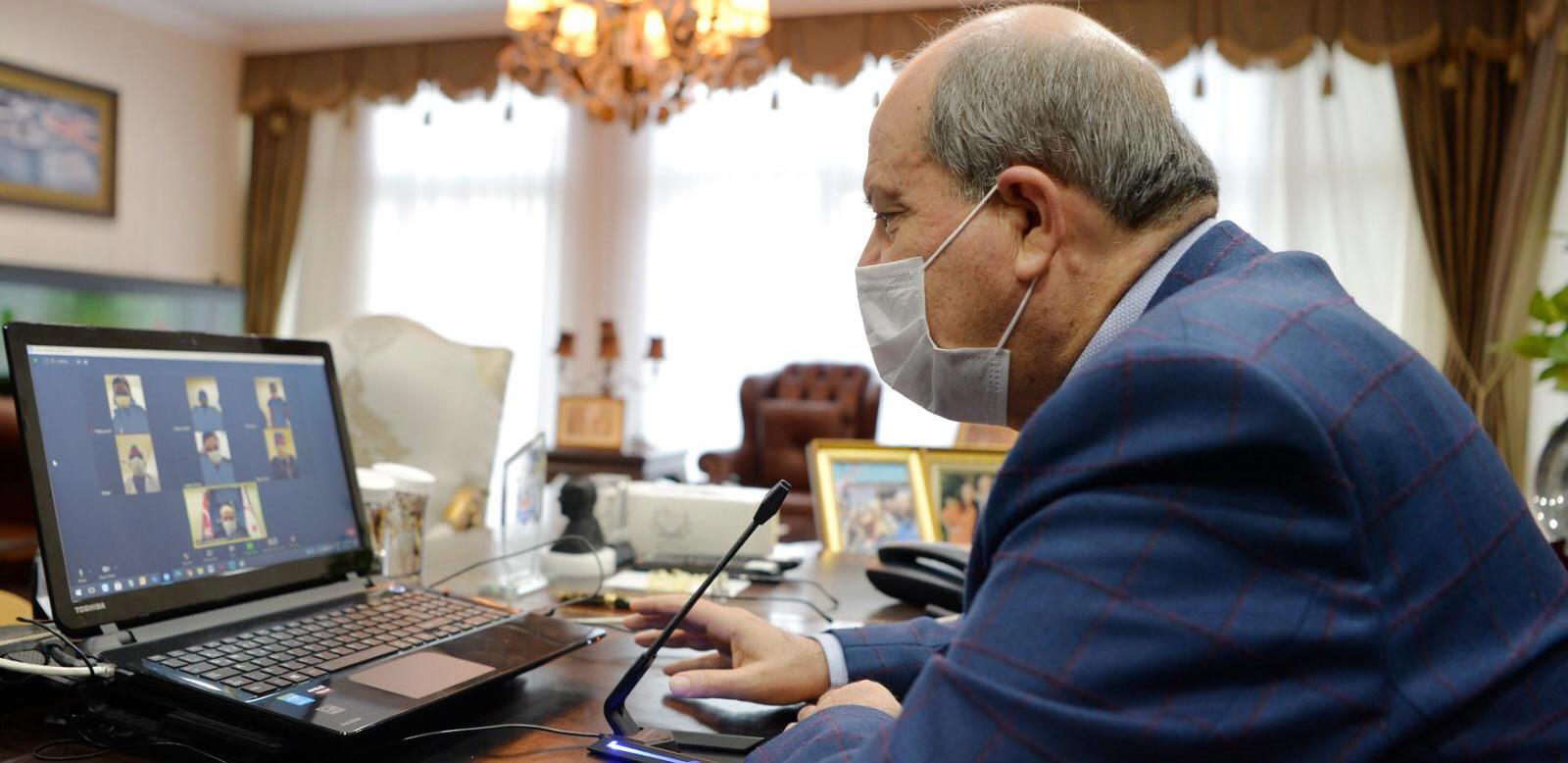 Cumhurbaşkanı Ersin Tatar, Lefkoşa Acil Durum Hastanesi hemşireleri ile online bir görüşme gerçekleştirerek özverili çalışmalarından dolayı teşekkür etti.
