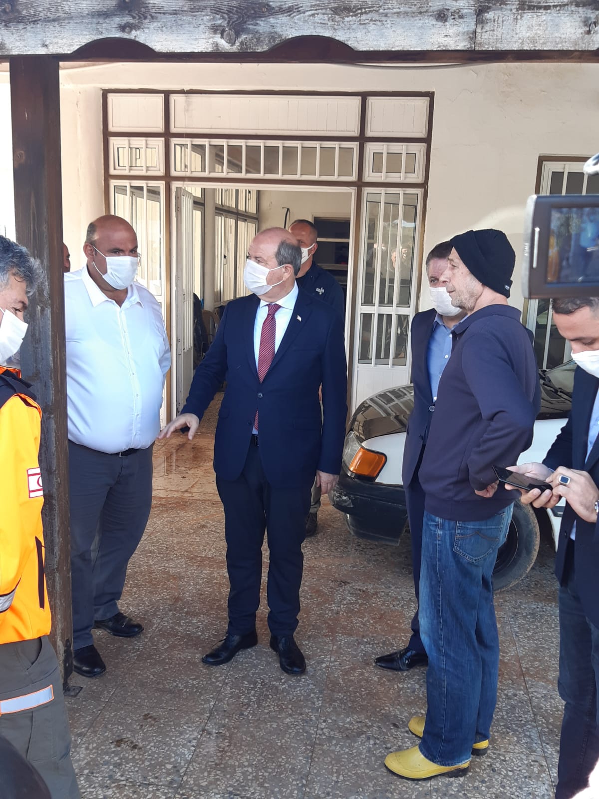 Burada bir açıklama yapan Cumhurbaşkanı Tatar, büyük bir faciadan dönüldüğünü kaydederek bölge halkına geçmiş olsun dileklerini iletti.
