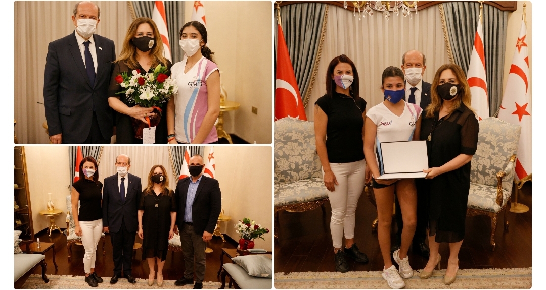 Cumhurbaşkanı Ersin Tatar ve eşi Sibel Tatar, Nev Çocuk Fitness Sahibi Neval Çelebioğlu Akgürgen, KKTC Halter ve Vücut Geliştirme Federasyonu Başkanı Ali Dahlameroğlu ve Nev Çocuk Fitness sporcularını kabul etti.