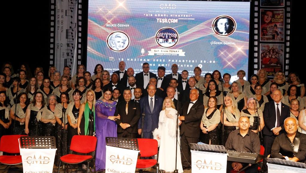 Girne Amfitiyatro’da yer alan ve Ersin Tünay yönetiminde, Neslihan Çakır’ın sunumunda, Belkıs Özener ve Çiğdem Gürdal solistliğindeki konseri izleyen Cumhurbaşkanı