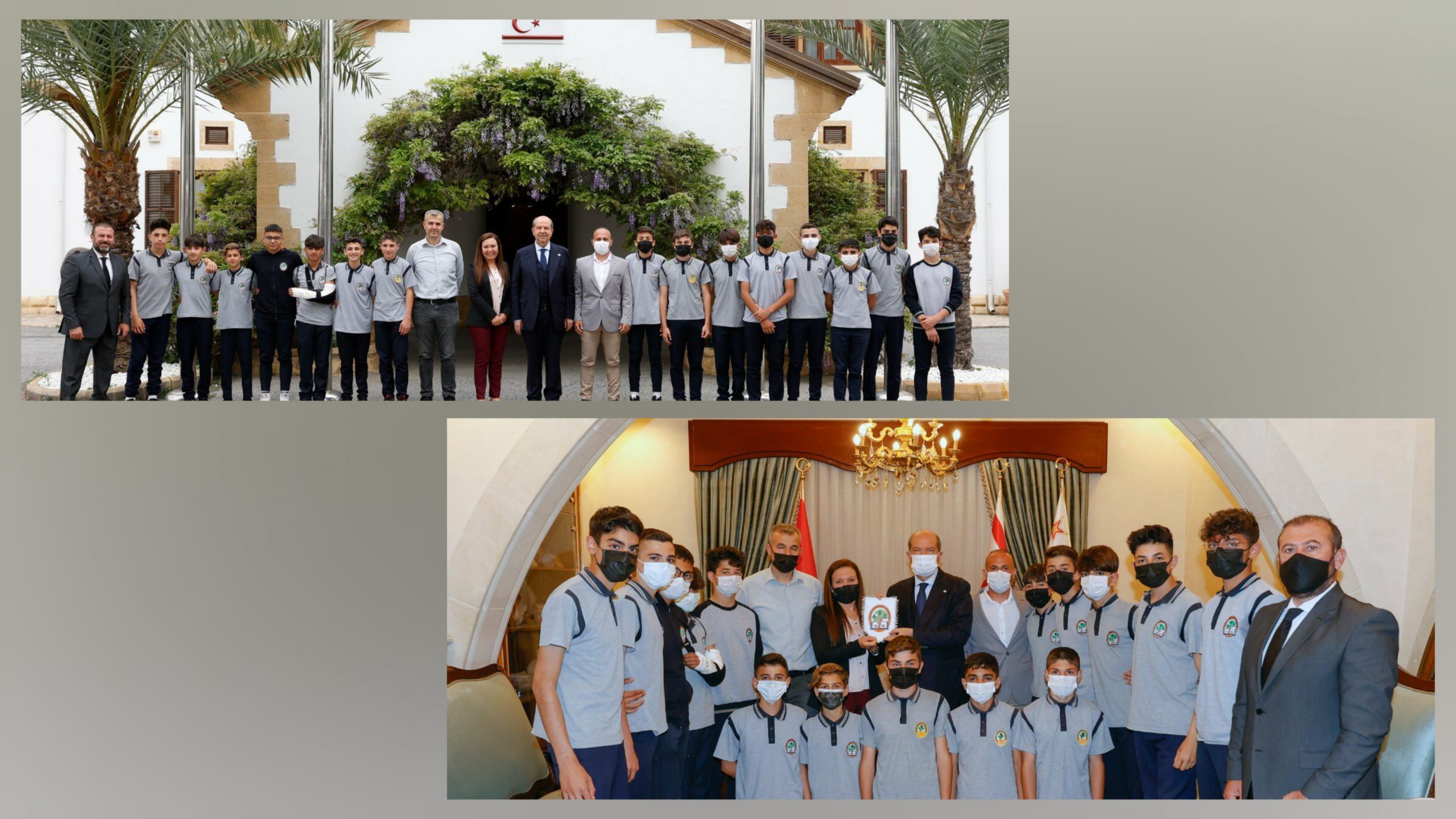 Cumhurbaşkanı Ersin Tatar, Atleks Sanverler Ortaokulu Müdürü Sevda Işıktaş, antrenörleri ve erkek futbol takımını kabul ederek görüştü.