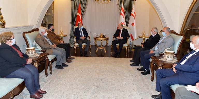 Cumhurbaşkanı Ersin Tatar, Gürsel Benan başkanlığındaki Şehit Aileleri ve Malul Gaziler Derneği üyelerini kabul etti.