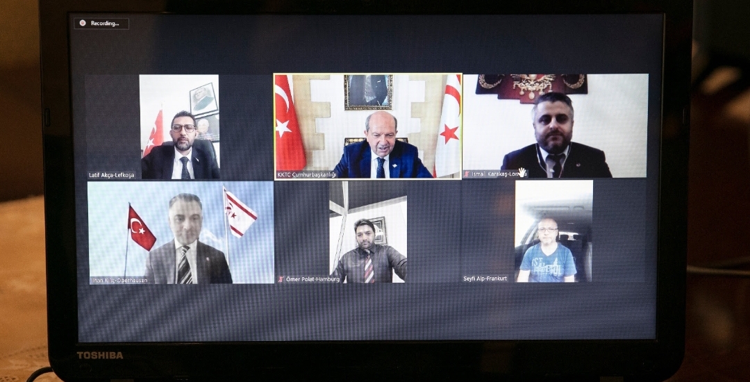 Cumhurbaşkanı Ersin Tatar, Avrupa’da yaşayan gazetecilerle çevrim içi bir görüşme yaparak Kıbrıs konusu ve 5+BM gayrıresmi görüşme öncesi gündeme dair değerlendirmelerde bulundu.