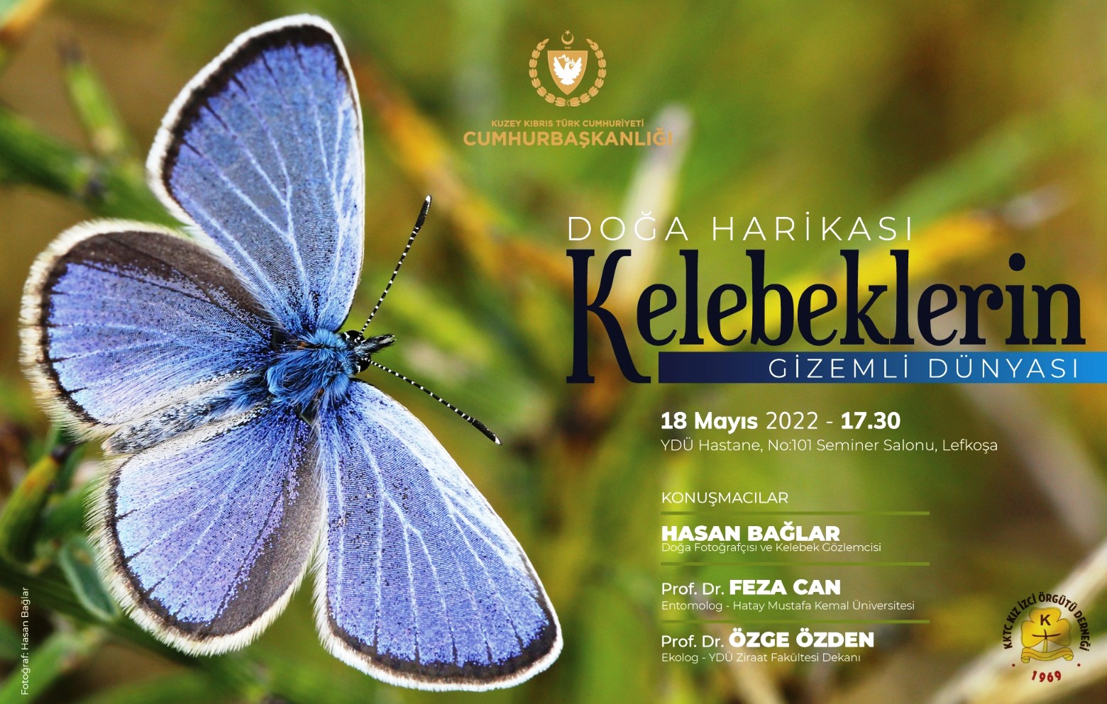 KKTC Kız İzci Örgütü Derneği iş birliği çerçevesinde yarın (18 Mayıs 2022) saat 17.30’da Yakın Doğu Üniversitesi Hastanesi No: 101 Seminer Salonu’nda “Doğa Harikası Kelebeklerin Gizemli Dünyası” adlı bir etkinlik düzenlenecek.