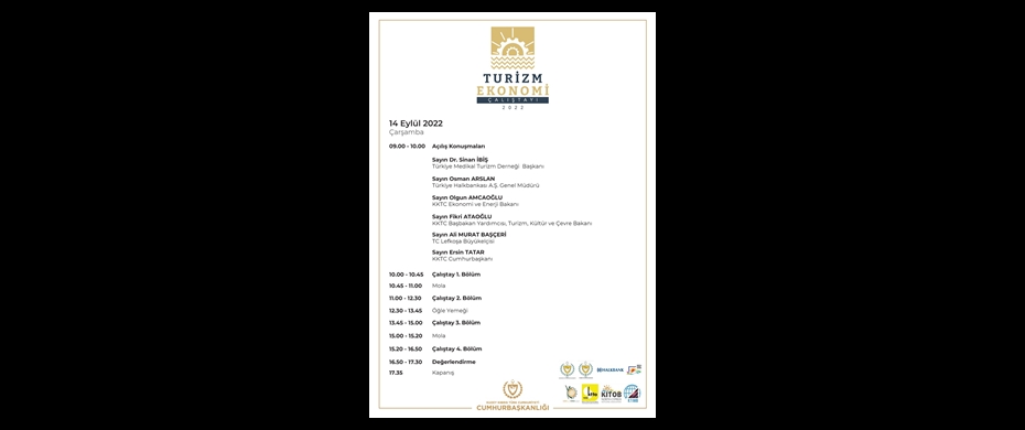 Cumhurbaşkanı Ersin Tatar ve eşi Sibel Tatar’ın katılımıyla Cumhurbaşkanlığı himayesinde Ekonomik Örgütler Platformu ve Halk Bankası katkılarıyla yarın (14 Eylül 2022 Çarşamba) Turizm ve Ekonomi Çalıştayı yapılacak.