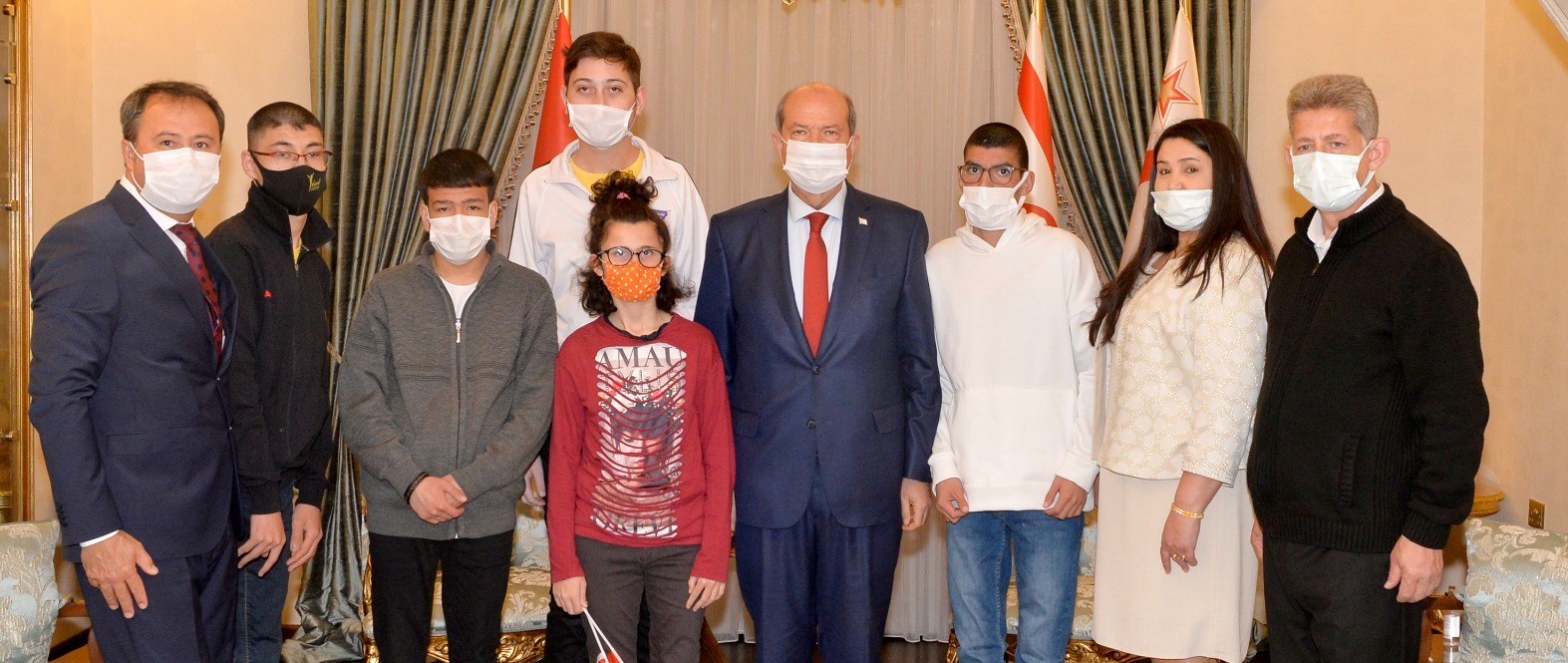 Cumhurbaşkanı Tatar kabuldeki konuşmasında, 23 Nisan Çocuk Bayramı öncesi öğrencilerle bir arada olmaktan dolayı duyduğu mutluluğu paylaşarak “Bu çocukları çok seviyoruz. Onların bir sıkıntısı varsa, bu bizlerin de sıkıntısıdır” dedi.