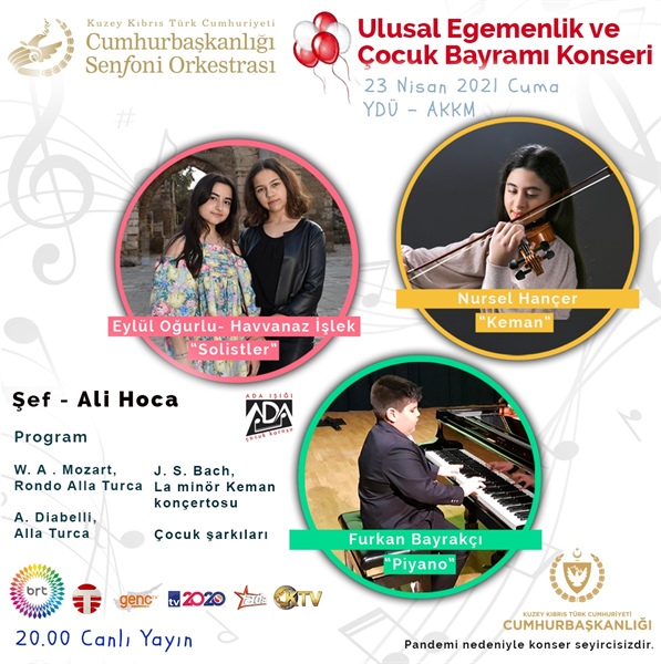 Cumhurbaşkanlığı Senfoni Orkestrası (KKTC CSO), Ulusal Egemenlik ve Çocuk Bayramı dolayısıyla düzenleyeceği konser ile 23 Nisan Cuma akşamı saat 20.00’de canlı yayında sanatseverlerle buluşuyor.