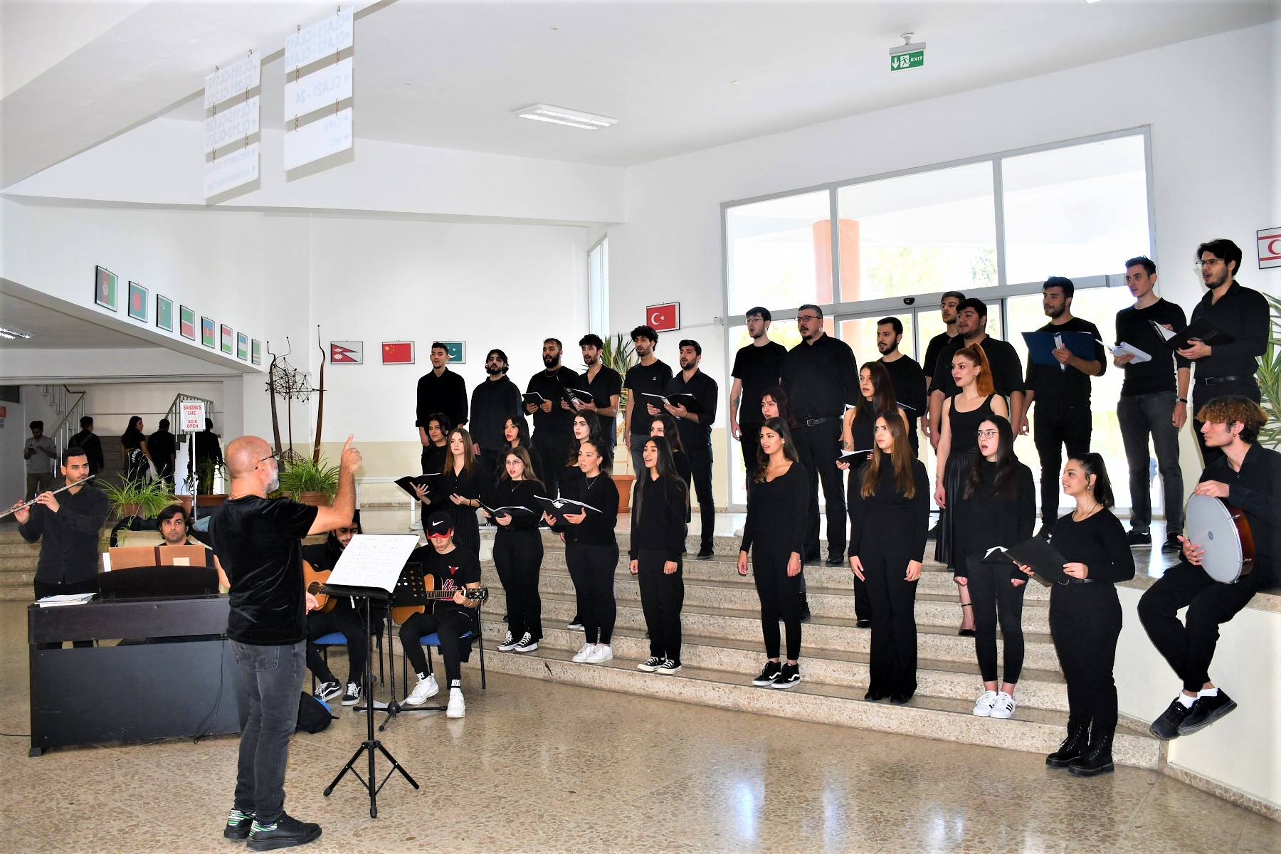 Doğu Akdeniz Üniversitesi (DAÜ) Eğitim Fakültesi, Güzel Sanatlar Eğitimi Bölümü, Müzik Öğretmenliği Programı öğrencileri tarafından, bugün DAÜ Merkezi Derslikler binası lobisinde, KKTC’nin kuruluşunun 39’uncu yıl dönümü dolayısıyla Cumhuriyet Konseri verildi.