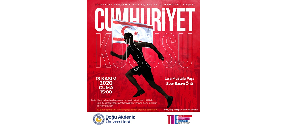 Doğu Akdeniz Üniversitesi (DAÜ) 2020-2021 Akademik Yılı’nın başlaması nedeniyle 13 Kasım’da Cumhuriyet Koşusu organize ediyor.