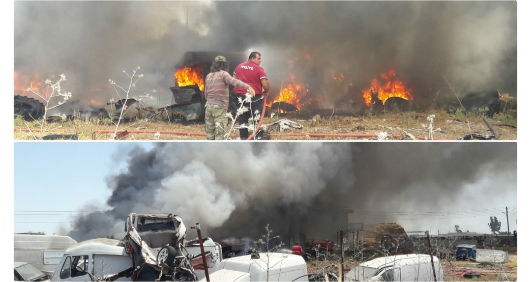 Yangın itfaiye ekipleri tarafından söndürülmüş olup, çıkan yangın sonucu; Hayri Boylu’ya ait hurdalık alanda bulunan plastik atıklar ile hurda nitelikli araçlar yanarak, Kerim Fidan’a ait ikametgahın 4 adet pencere camı ısıdan kırılmak suretiyle, plastik su hattı ve elektrik kablosu ile bir adet elektrik direği ve üzerindeki aparatlar yanarak zarar gördü.