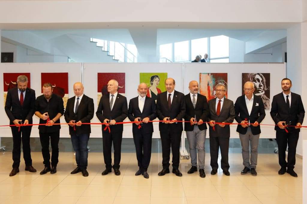 Cumhurbaşkanı Ersin Tatar, Yakın Doğu Üniversitesi Güzel Sanatlar Fakültesi sanatçılarının hazırladığı eserlerden oluşan ve Yakın Doğu Üniversitesi Diş Hekimliği Fakültesi Sergi Salonu’nda düzenlenen “Güzel Sanatlar Cumhuriyet Sergisi’nin” açılışını yaptı.