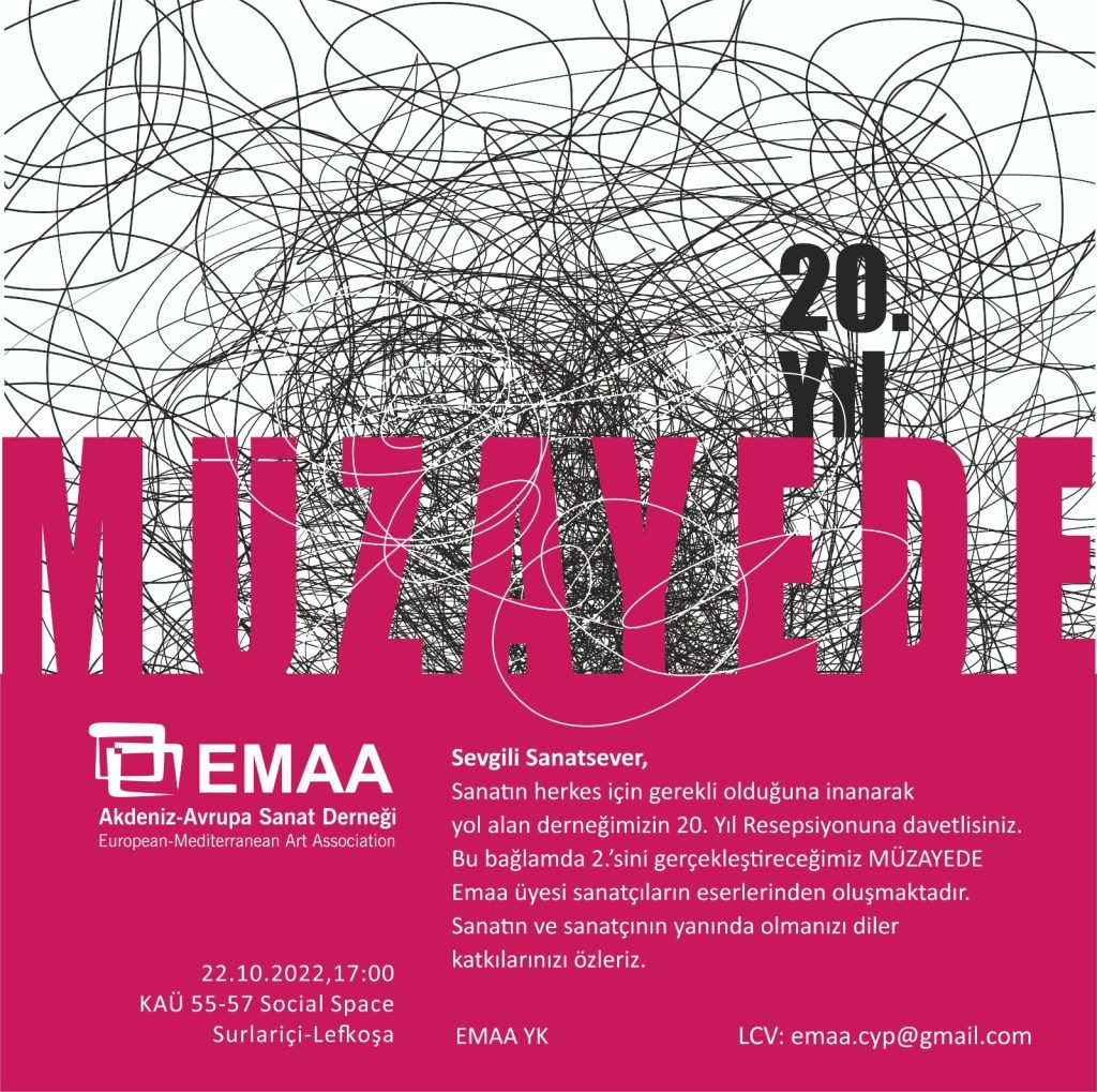 “Herkes için sanat” vizyonuyla 2002 yılında faaliyetine başlayan Akdeniz Avrupa Sanat Derneği (EMAA), 20’nci yılını bir resepsiyon ve müzayedeyle kutluyor.