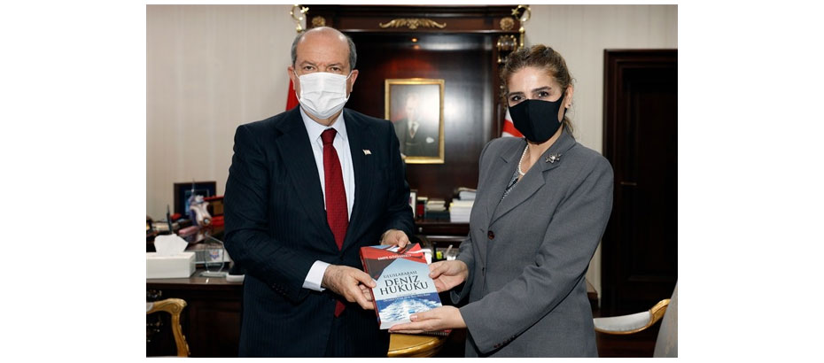 Akademisyen Emete Gözügüzelli, “Uluslararası Deniz Hukuku-Türk Denizleri ve Olmazsa Olmaz (Sine Qua Non) İlkeler” isimli kitabını Cumhurbaşkanı Ersin Tatar’a takdim ederek çalışmalarıyla ilgili bilgi verdi.