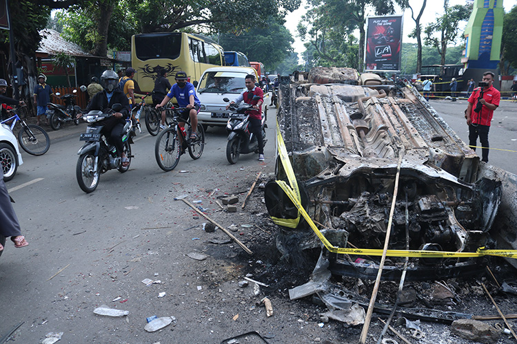 Doğu Java eyaletinin Malang şehrinde oynan maçın ardından iki rakibin taraftarları arasında kavga çıktı.