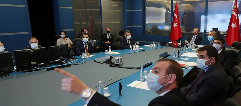 Erdoğan, Devlet Bilgi Koordinasyon Merkezi’nde orman yangınlarıyla ilgili toplantıya başkanlık etti