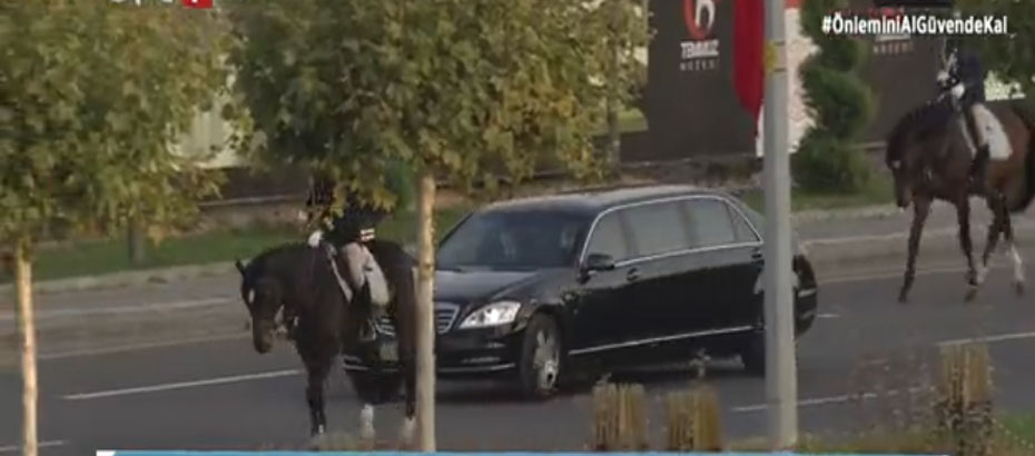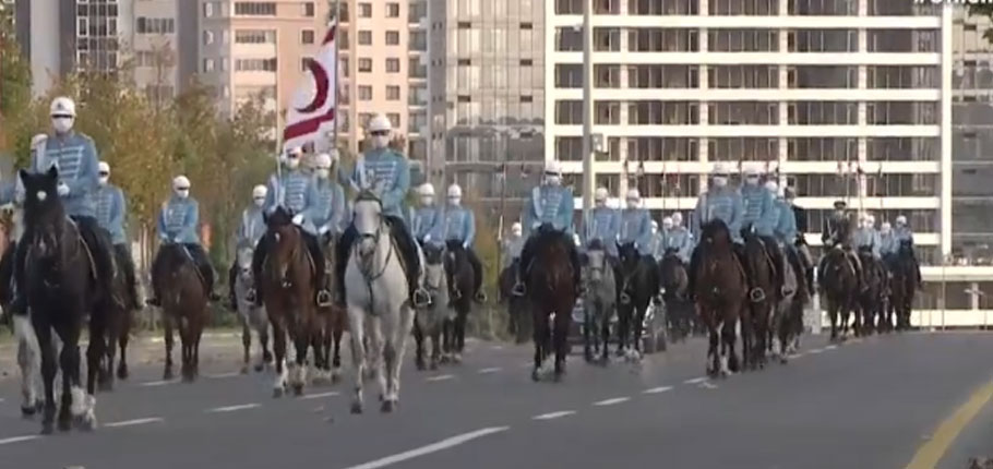 Cumhurbaşkanı Tatar‘ın makam aracını Cumhurbaşkanlığı Külliyesi’nin önündeki caddede karşılayan süvariler, protokol kapısına kadar eşlik etti.