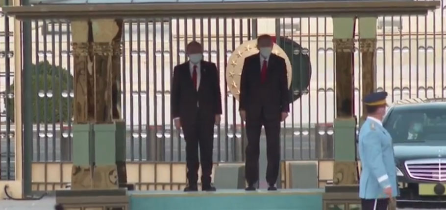 Erdoğan, Tatar‘ı Cumhurbaşkanlığı Külliyesi’nin ana giriş kapısında karşıladı. Erdoğan ve Tatar‘ın tören alanındaki yerlerini almalarının ardından, 21 pare top atışı eşliğinde İstiklal Marşı çalındı.