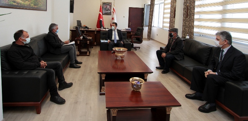 Kıbrıs Türk Esnaf ve Zanaatkarlar Odası Başkanı Mahmut Kanber ve yanındaki heyet, Başbakan Ersan Saner taranfıdan kabul edildi.