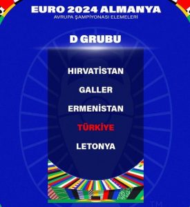 Türkiye A Milli Futbol Takımı, 2024 Avrupa Şampiyonası (EURO 2024) elemelerinde D Grubu’nda Hırvatistan, Galler, Ermenistan ve Letonya ile eşleşti.
