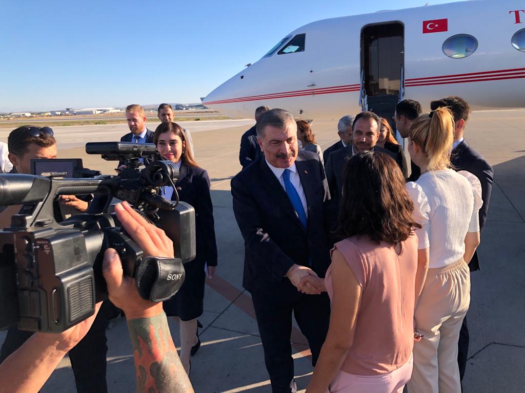 66. Milli Pediatri Kongresi’ne katılmak üzere KKTC’ye gelen Türkiye Cumhuriyeti Sağlık Bakan Fahrettin Koca’yı Ercan Havalimanı’nda mevkidaşı KKTC Sağlık Bakanı İzlem Gürçağ Altuğra, Türkiye Cumhuriyeti Lefkoşa Büyükelçisi Ali Murat Başçeri karşıladı.