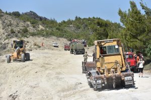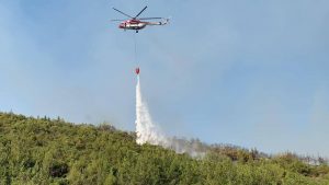 Fire fighting helicopters are being used in the efforts to put out the fires in the Mersinlik area.