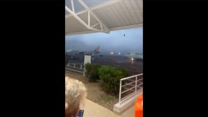 France 3’teki habere göre, kuvvetli fırtına, yakındaki ağaçları devirerek havaalanındaki piste savurdu.