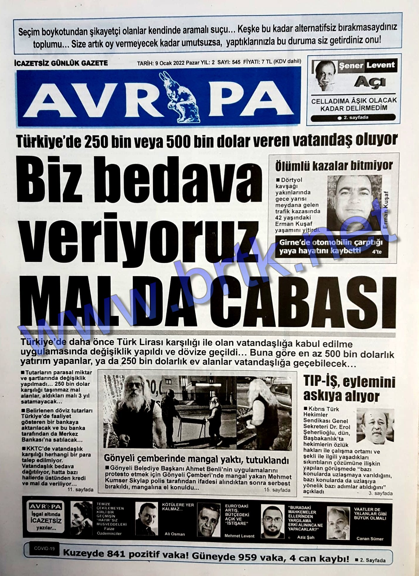 Gazete Manşetleri 09.01.2022