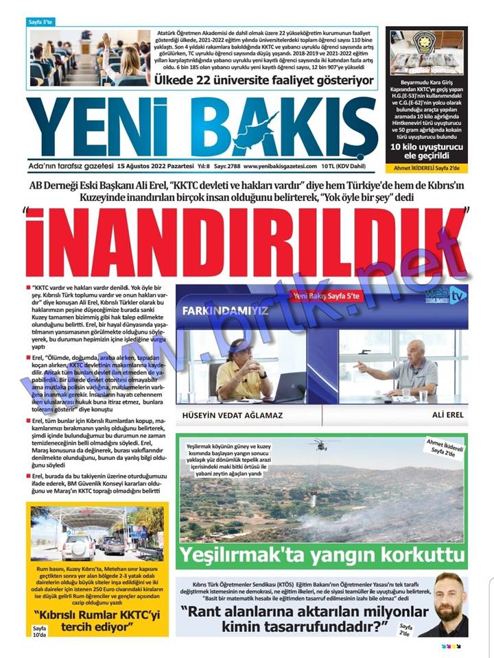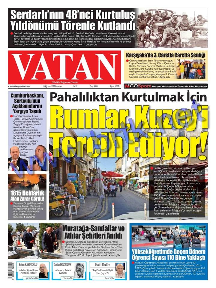 Gazete Manşetleri 15.08.2022