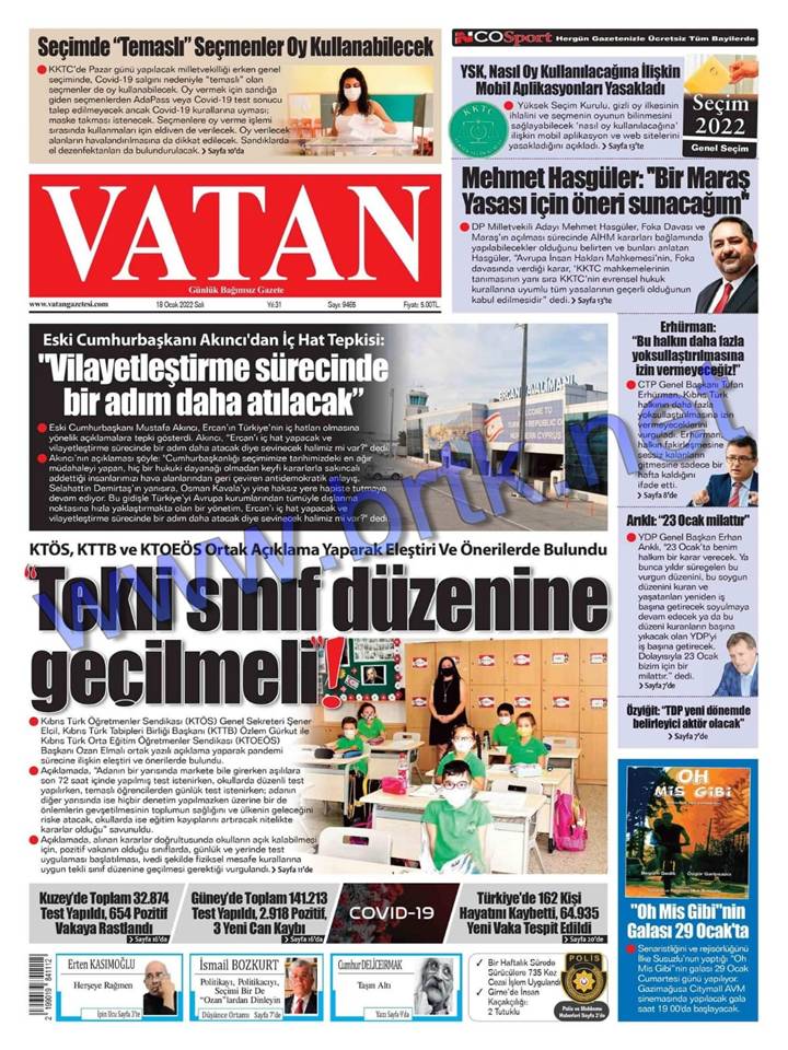 Gazete Manşetleri 18.01.2022