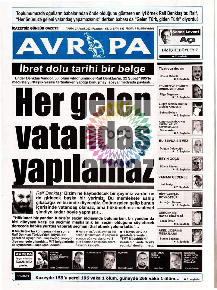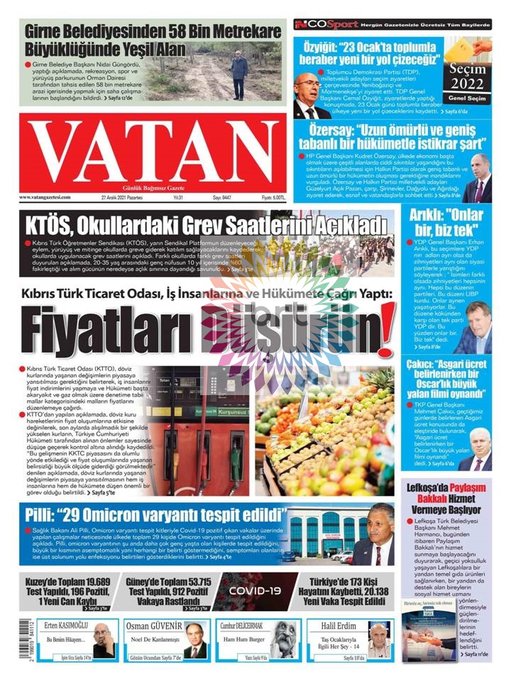 Gazete Manşetleri 27.12.2021