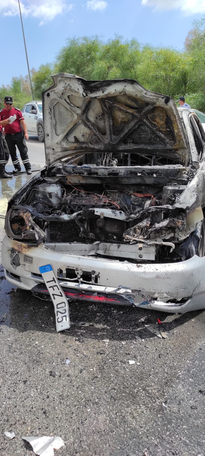 Kaza sonucu TFZ 025 plakalı araç komple yanmıştır.