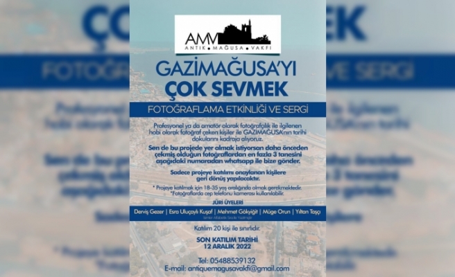 Antik Mağusa Vakfı, “Gazimağusa’yı Çok Sevmek” konulu fotoğraflama etkinliği ve sergi düzenliyor. Projeye son başvuru tarihi 12 Aralık…