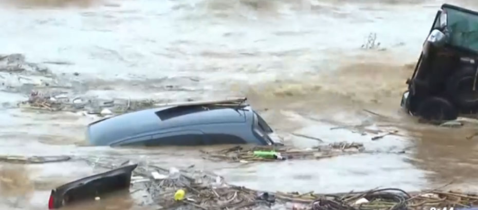 Kandiye kentinde etkili olan sel nedneiyle yüzlerce ev ve iş yeri sular altında kaldı, araçlar denize sürüklendi.