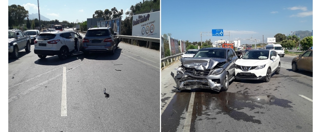 Bugün, saat 15:30 sıralarında, Girne – Alsancak çevre yolu üzerinde, Banu Keşanlı (K-48), yönetimindeki SB 081 plakalı araç ile isimsiz yol üzerinde kuzey istikametine doğru seyrettiği sırada anayolda seyreden araçlara öncelik hakkı vermeden dikkatsizce çevre yoluna giriş yapması sonucu, o esnada çevre yolu üzerinde Alsancak istikametine doğru seyreden Hilkat Keleşoğlu (K-37) yönetimindeki PU 033 plakalı aracın önünü tıkaması sonucu çarpışmışlardır.