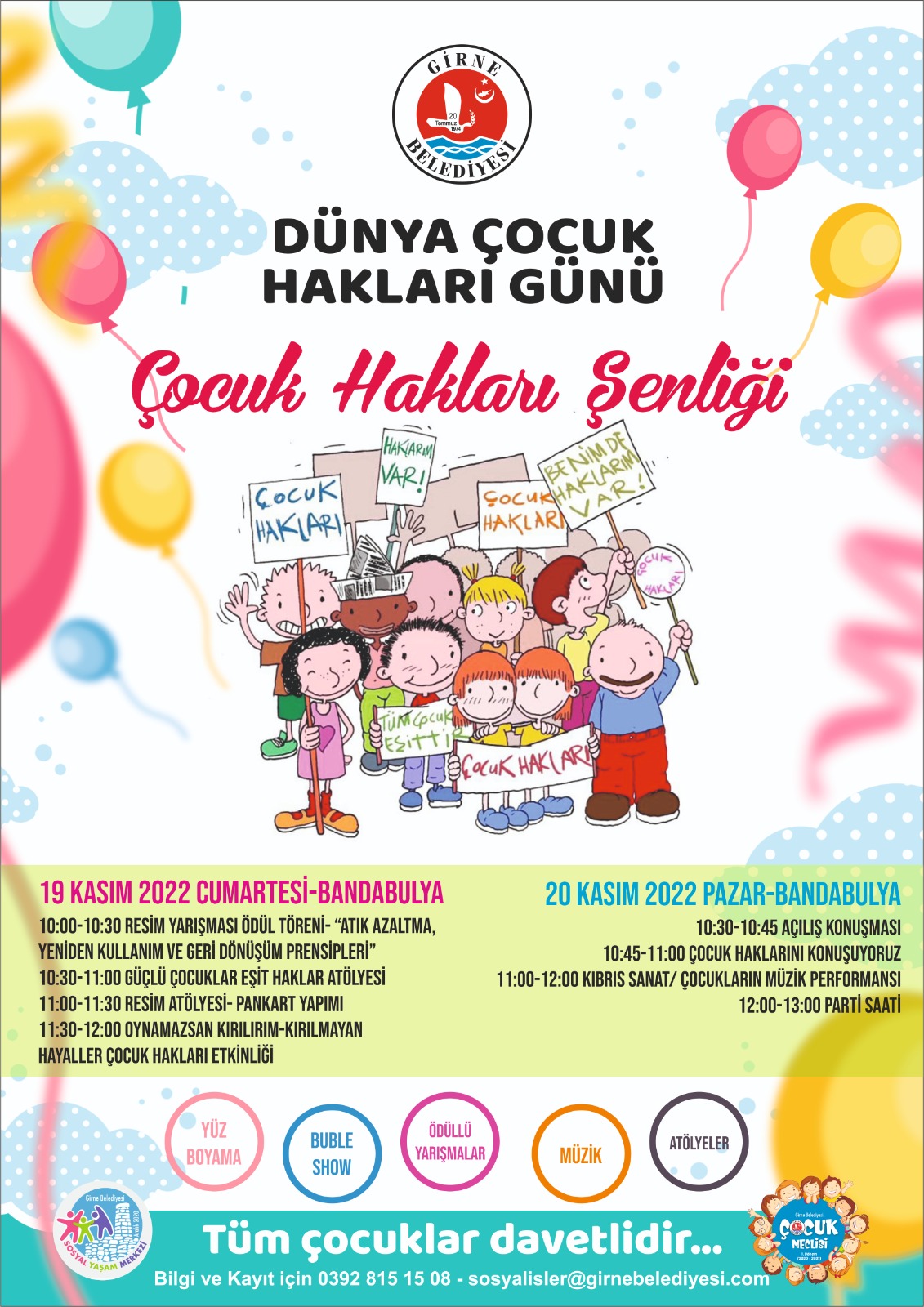 Girne Belediyesi, 20 Kasım Dünya Çocuk Hakları Günü nedeniyle, Bandabuliya’da 19 ve 20 Kasım’da etkinlikler düzenliyor.
