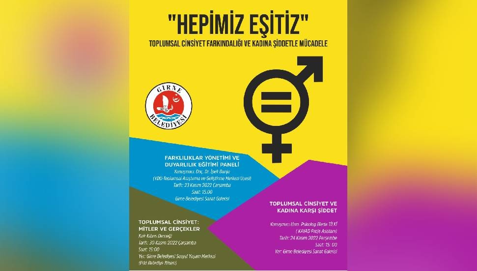 Girne Belediyesi Danışma ve Destek Merkezi, Toplumsal Cinsiyet Eşitliği Ofisi’nin Toplumsal Cinsiyet Eşitliği farkındalık çalışmaları kapsamında 3 eğitim düzenleyecek.