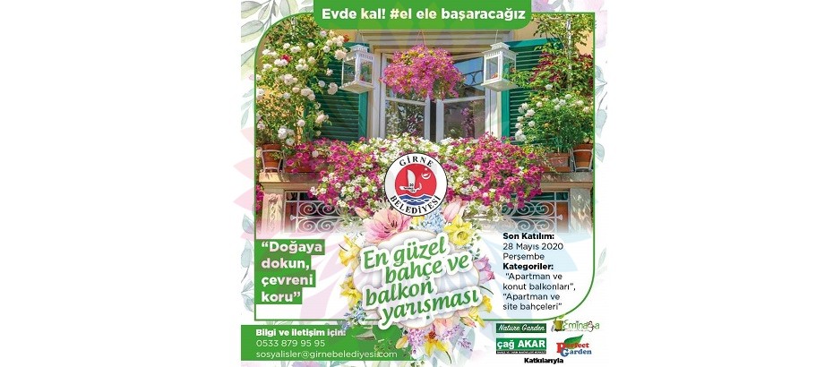 Natura Garden, Eminağa Garden, Çağakar, Perfect Garden’ın katkılarıyla düzenlenen yarışmaya katılmak isteyen vatandaşlar 28 Mayıs Perşembe gününe kadar, Girne Belediyesi Sosyal İşler Şubesi’ne 0533 879 95 95 numaralı WhatsApp hattına mesajla veya sosyalisler@girnebelediyesi.com adresine mail yoluyla mekanlarının fotoğraflarını göndererek başvuruda bulunabilecek.