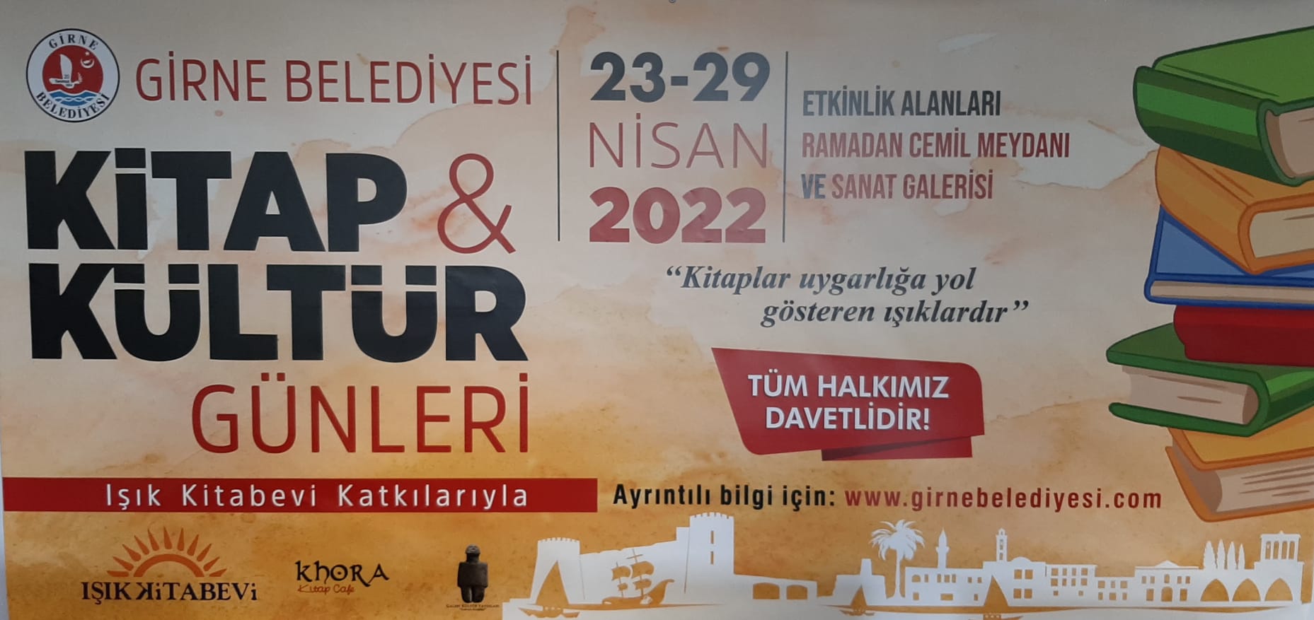 Girne Belediyesi ile Işık Kitabevi işbirliğinde, 23-29 Nisan tarihleri arasında, Girne Ramadan Cemil Meydanı ve Girne Belediyesi Sanat Galerisinde ‘Kitap ve Kültür Sanat Günleri’ etkinliği düzenleniyor.